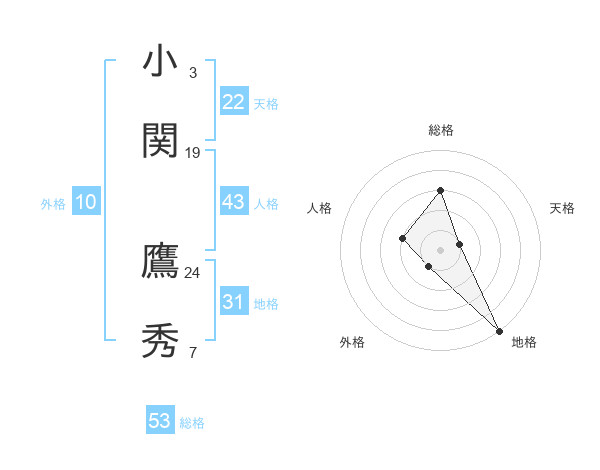 小関 鷹秀さんを姓名の画数から五運を鑑定