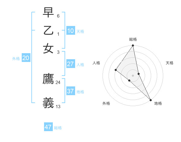 早乙女 鷹義さんを姓名の画数から五運を鑑定