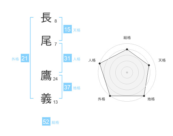 長尾 鷹義さんを姓名の画数から五運を鑑定
