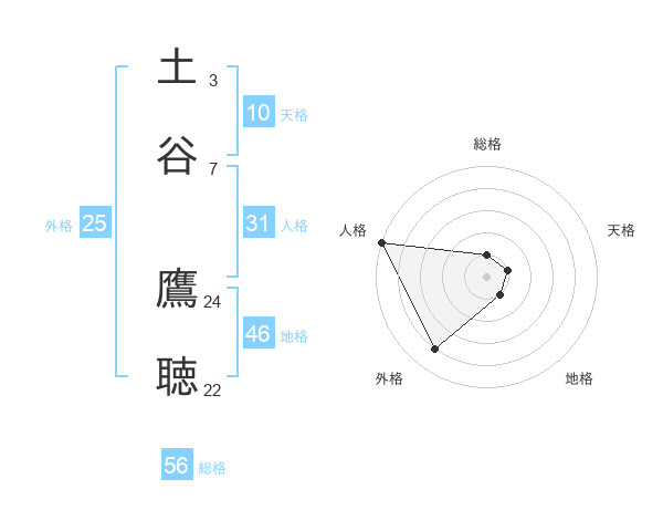 土谷 鷹聴さんの総格は56画の1点!