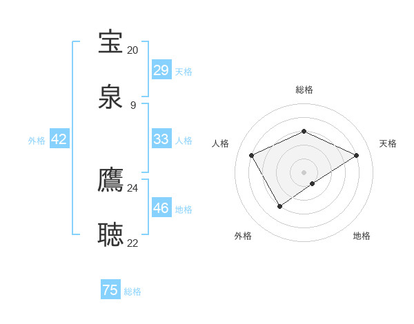 宝泉 鷹聴さんの総格は75画の3点
