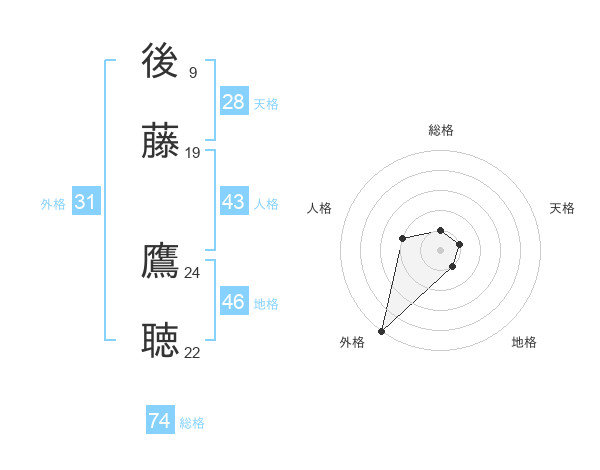 後藤 鷹聴さんを姓名の画数から五運を鑑定