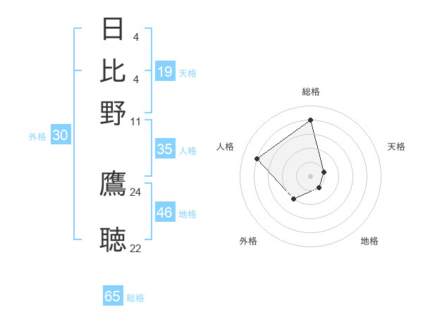 日比野 鷹聴さんの総格は65画の4点!