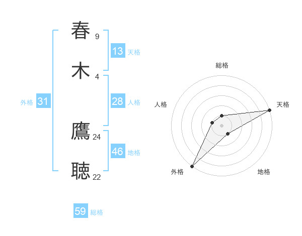 春木 鷹聴さんを姓名の画数から五運を鑑定