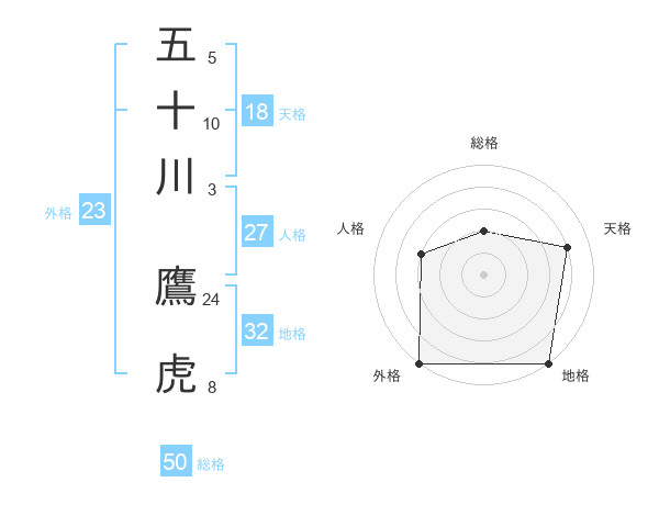五十川 鷹虎さんを姓名の画数から五運を鑑定