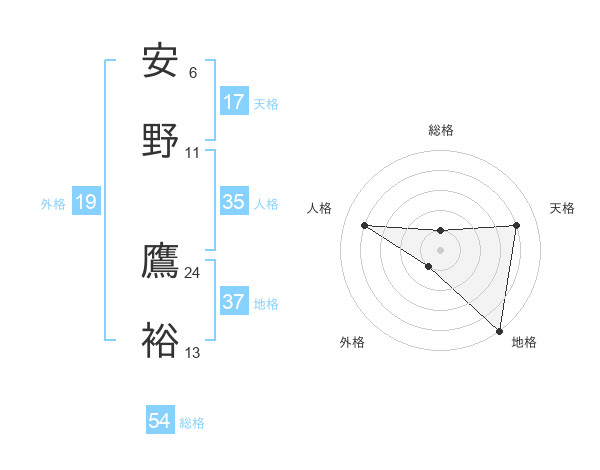 安野 鷹裕さんを姓名の画数から五運を鑑定