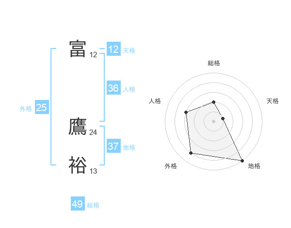富 鷹裕さんの地格は37画の5点!