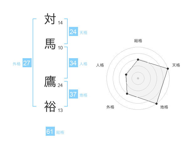 対馬 鷹裕さんを姓名の画数から五運を鑑定