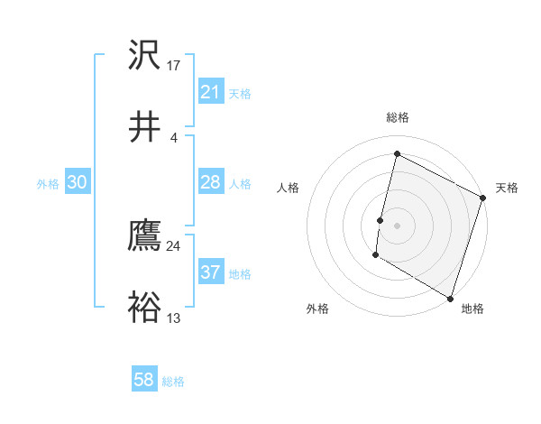 沢井 鷹裕さんを姓名の画数から五運を鑑定
