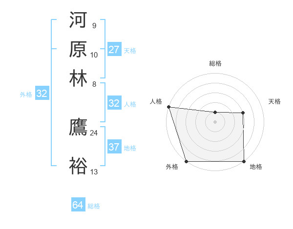 河原林 鷹裕さんを姓名の画数から五運を鑑定