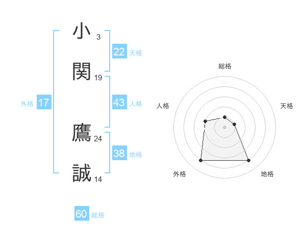 小関 鷹誠さんを姓名の画数から五運を鑑定