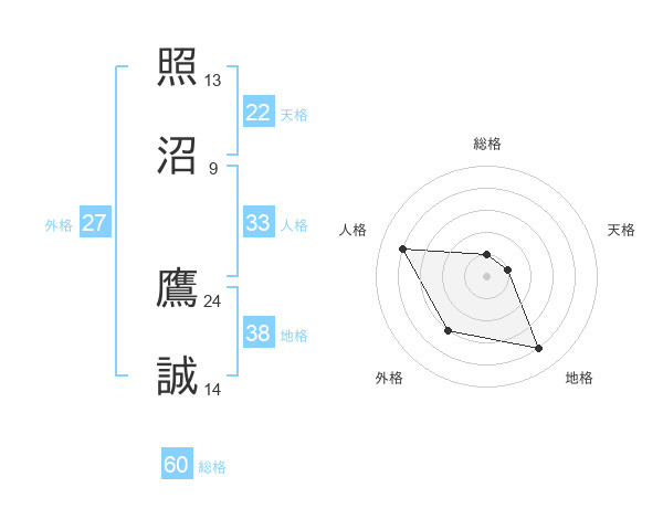 照沼 鷹誠さんを姓名の画数から五運を鑑定