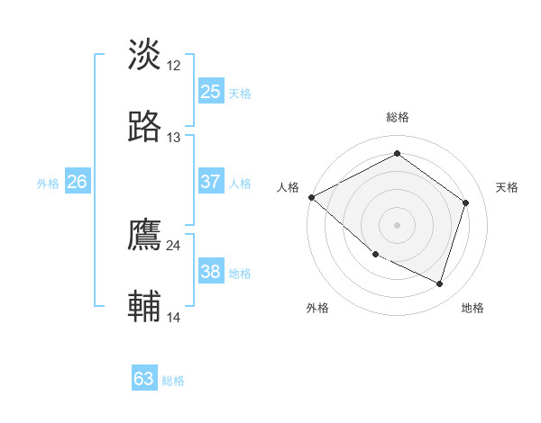淡路 鷹輔さんの総格は63画の4点!