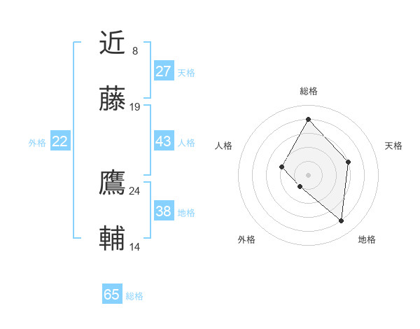 近藤 鷹輔さんの総格は65画の4点!