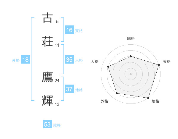 古荘 鷹輝さんを姓名の画数から五運を鑑定