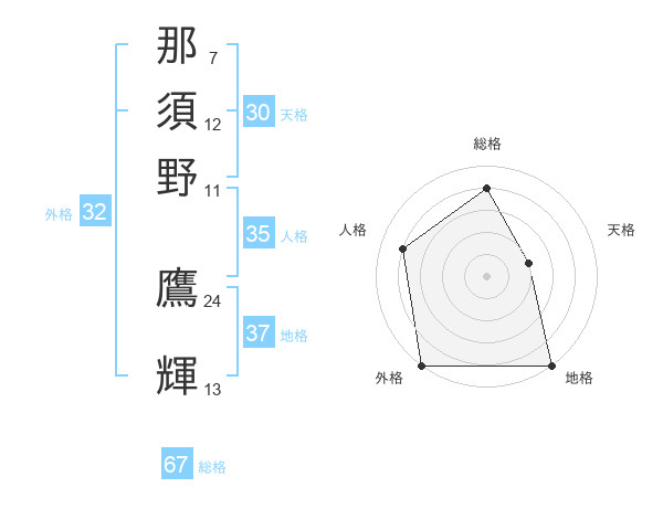 那須野 鷹輝さんを姓名の画数から五運を鑑定