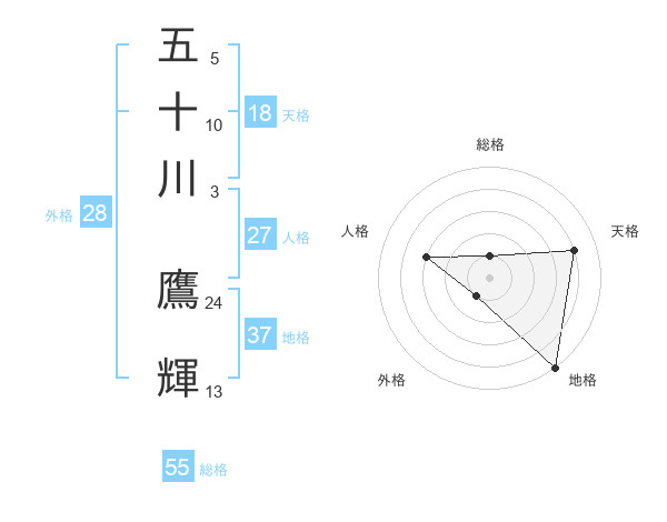 五十川 鷹輝さんの総格は55画の1点