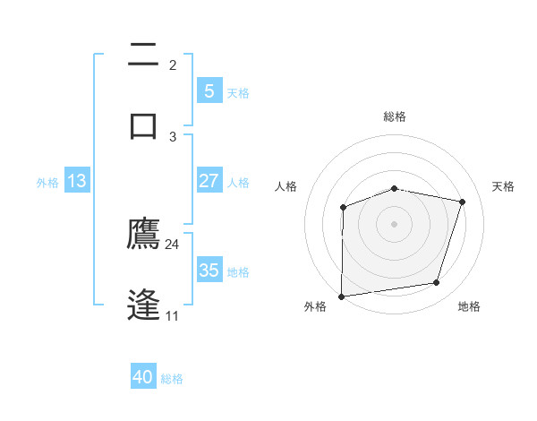 二口 鷹逢さんを姓名の画数から五運を鑑定