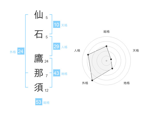 仙石 鷹那須さんを姓名の画数から五運を鑑定
