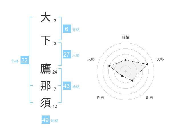大下 鷹那須さんを姓名の画数から五運を鑑定
