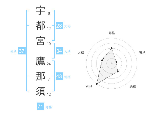 宇都宮 鷹那須さんの総格は71画の3点!