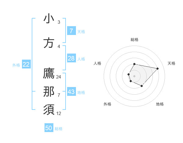小方 鷹那須さんを姓名の画数から五運を鑑定