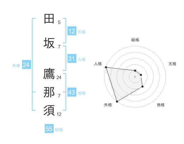 田坂 鷹那須さんの総格は55画の1点!