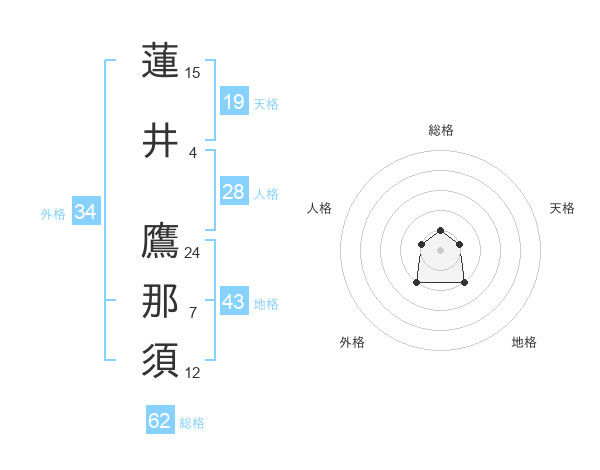 蓮井 鷹那須さんを姓名の画数から五運を鑑定