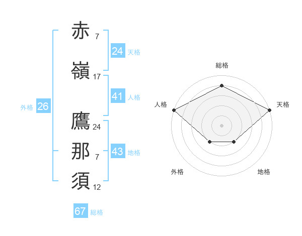 赤嶺 鷹那須さんを姓名の画数から五運を鑑定
