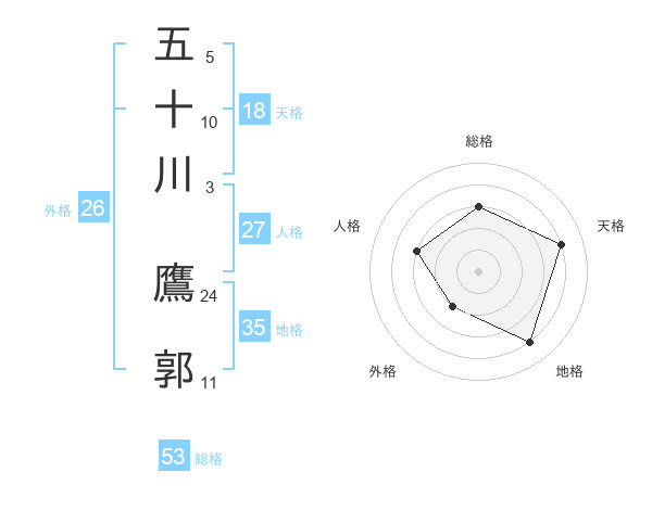 五十川 鷹郭さんを姓名の画数から五運を鑑定
