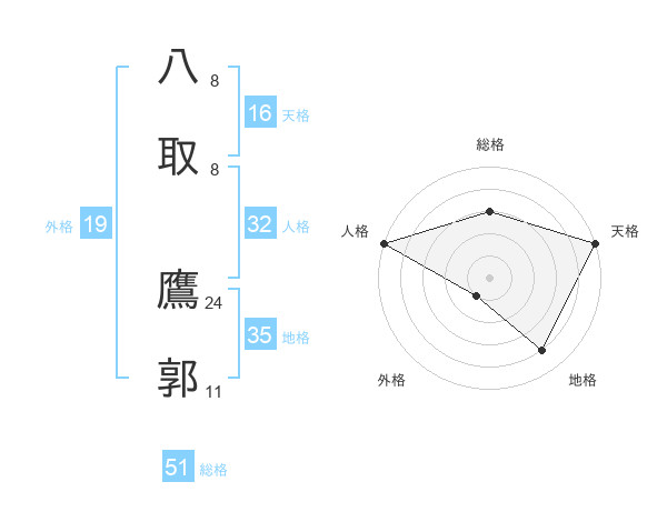八取 鷹郭さんの総格は51画の3点!