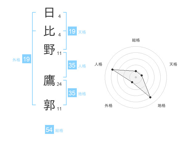 日比野 鷹郭さんを姓名の画数から五運を鑑定