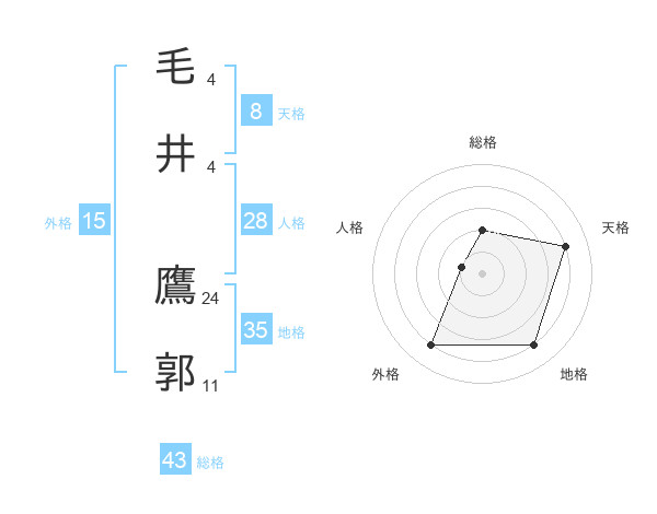 毛井 鷹郭さんを姓名の画数から五運を鑑定