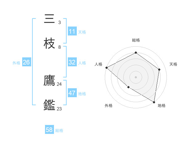 三枝 鷹鑑さんの総格は58画の4点!