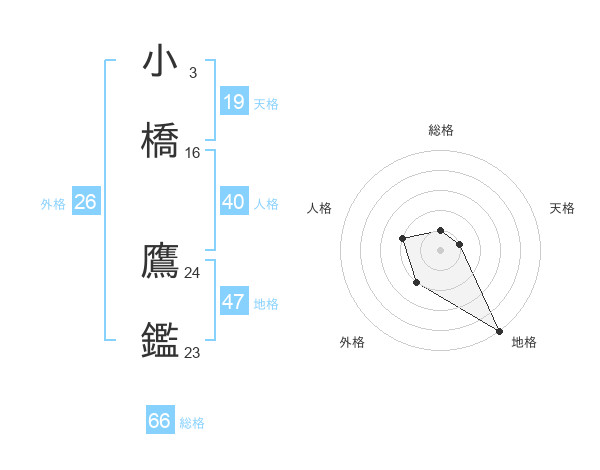 小橋 鷹鑑さんを姓名の画数から五運を鑑定