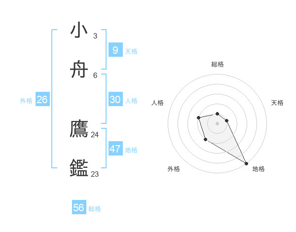 小舟 鷹鑑さんの総格は56画の1点!
