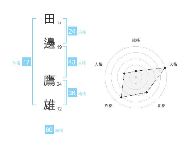 田邊 鷹雄さんを姓名の画数から五運を鑑定