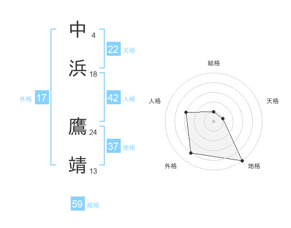 中浜 鷹靖さんを姓名の画数から五運を鑑定