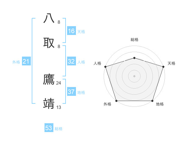 八取 鷹靖さんの外格は21画の5点!