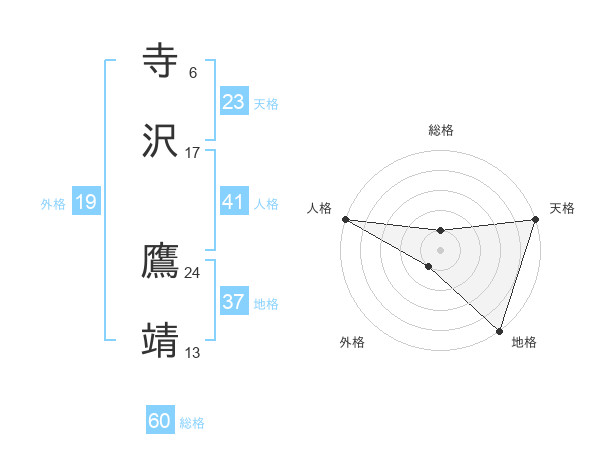 寺沢 鷹靖さんの地格は37画の5点!