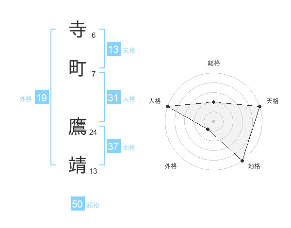 寺町 鷹靖さんの総格は50画の2点!