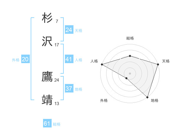 杉沢 鷹靖さんを姓名の画数から五運を鑑定