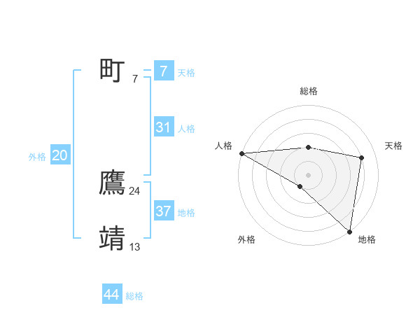 町 鷹靖さんの総格は44画の2点!