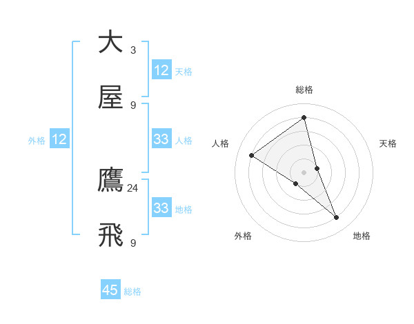 大屋 鷹飛さんの総格は45画の4点
