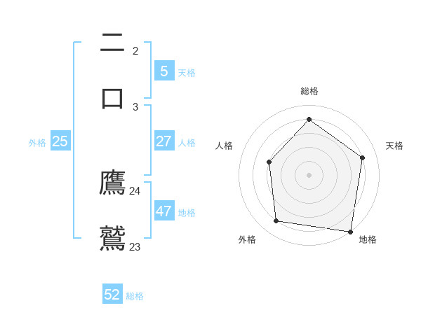 二口 鷹鷲さんの総格は52画の4点!