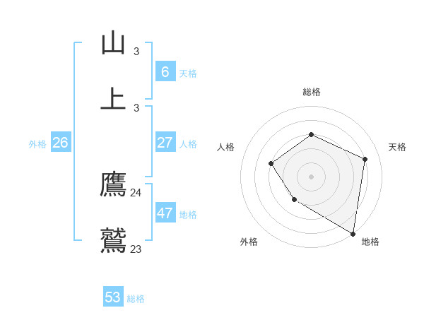 山上 鷹鷲さんを姓名の画数から五運を鑑定