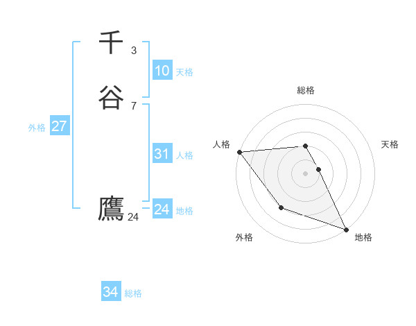 千谷 鷹さんの総格は34画の2点!