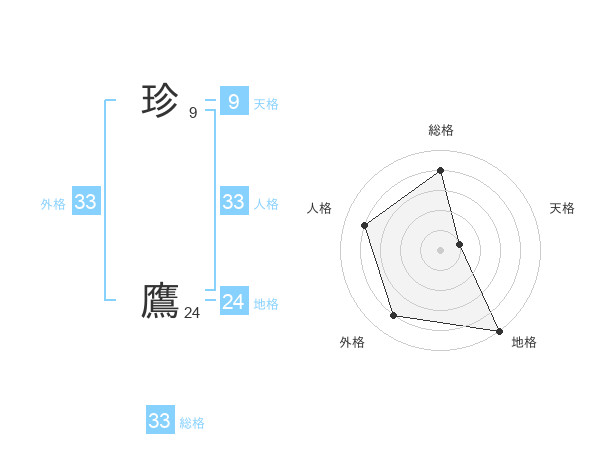 珍 鷹さんの総格は33画の4点!