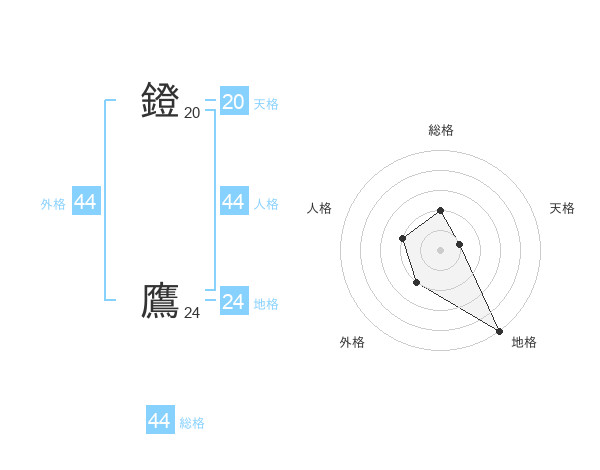 鐙 鷹さんの外格は44画の2点!