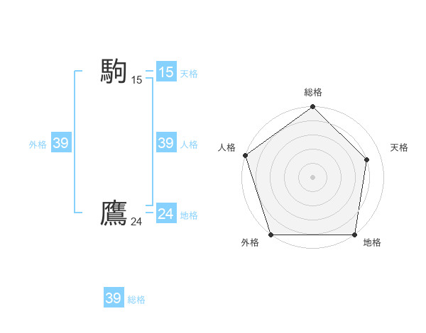 駒 鷹さんの総格は39画の5点!